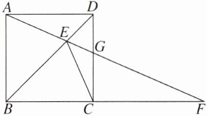 12. 如图,四边形 ABCD 是正方形,点 G 为边 CD 上一点,连结 AG 并延长,交 BC 的延长线于点 F,连结 BD 交 AF 于点 E,连结 EC. 求证:
