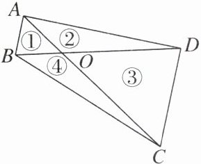 5. 如图,四边形$ABCD的对角线AC$,$BD相交于点O$,且将这个四边形分成①,②,③,④四个三角形.若$OA:OC= OB:OD$,则下列结论中,一定成立的是( )