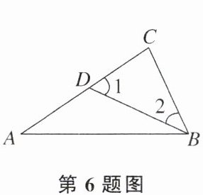 6. 如图,在$\triangle ABC$中,点$D为边AC$上的一点,选择下列条件:①$\angle 2= \angle A$.②$\angle 1= \angle CBA$.③$\frac{BC}{AC}= \frac{CD}{AB}$.④$\frac{BC}{AC}= \frac{CD}{BC}$中的一个,其中,不能得出$\triangle ABC和\triangle BCD$相似的是 ______ .(填序号)