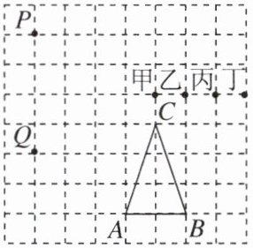 2. 如图,已知点 A,B,C,P,Q,甲、乙、丙、丁都是方格纸的格点,为使△ABC∽△PQR,则点 R 应是甲、乙、丙、丁中的 (