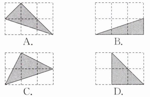 4. 如图,在 2×3 的方格图中,△ABC 的顶点均在格点上,下列选项中的格点三角形(阴影部分)与△ABC 相似的是 (