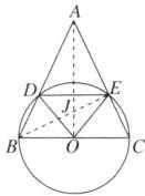 24.(12分)如图,在锐角三角形ABC中,AB= AC,以BC为直径的⊙O分别交AB,AC于点D,E,连结OD,OE,DE.