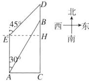 ∴EH=AC=200米.根据题意得∠D=45°,