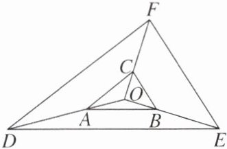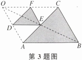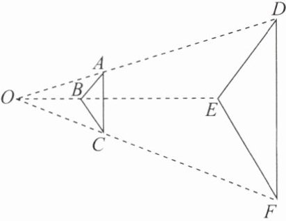 3. 如图,这是利用图形的位似绘制的一幅“小鱼”图案,其中 O 为位似中心,且 OA= 2OD,若图案中鱼身(△ABC)的周长为 16,则鱼尾(△DEF)的周长为(