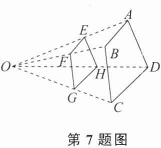 7. 如图,四边形 ABCD 与四边形 EFGH 位似,点 O 为位似中心,OE/OA= 3/5,则 S四边形EFGH/S四边形ABCD=