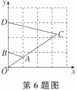 6. 如图,在平面直角坐标系中,以原点 O 为位似中心,将△OAB 放大后得到△OCD,若 B(0,1),D(0,3),则△OAB 与△OCD 的周长比为