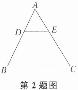 2. 如图,在△ABC中,点D,E分别在AB,AC上,且DE//BC,若AD= 2,BD= 3,DE= 2,则BC的长是( )