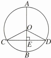10. 如图,在$\odot O$中,直径 $AB\perp$弦 CD 于点 E.若 $BE= \frac{1}{4}CD= 4$,则 $\angle COD\approx$