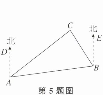 5. 如图,C岛在A岛的北偏东50°方向,C岛在B岛的北偏西35°方向,则∠ACB的大小是______.