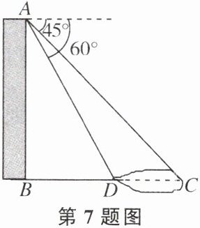 7. 如图,从楼顶A处看楼下荷塘C处的俯角为45°,看楼下荷塘D处的俯角为60°,已知楼高AB为30米,则荷塘的宽CD为______米.(结果保留根号)