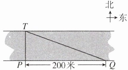 3. 如图,为了测量一条河流的宽度,一测量员在河岸边相距200米的P,Q两点分别测定对岸一棵树T的位置,T在P的正北方向,且T在Q的北偏西70°方向,则河宽(PT的长)可以表示为( )