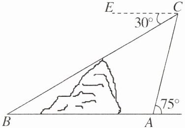 10. 如图,在小山的东侧点A处有一个热气球,由于受西风的影响,以30 m/min的速度沿与地面成75°角的方向飞行,20 min后到达点C处,此时热气球上的人测得小山西侧点B处的俯角为30°,则小山东西两侧A,B两点间的距离为______.