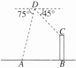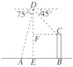 【变式】如图,某无人机爱好者在一小区外操控无人机,当无人机飞行到一定高度D点处时,无人机测得操控者A的俯角为75°,测得小区楼房BC顶端点C处的俯角为45°.已知操控者A和小区楼房BC之间的距离为70米,此时无人机D距地面AB的高度为74.6米,求小区楼房BC的高度.(参考数据:sin 75°≈0.97,cos 75°≈0.26,tan 75°≈3.73)