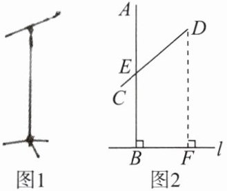 【例1】图1是放置在水平地面上的落地式话筒架实物图,图2是其示意图.支撑杆AB垂直于地面l,活动杆CD固定在支撑杆上的点E处.若∠AED= 48°,BE= 110 cm,DE= 80 cm,求活动杆端点D离地面的高度DF.(结果精确到1 cm,参考数据:sin 48°≈0.74,cos 48°≈0.67,tan 48°≈1.11)