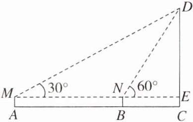 解:由题意得AM=BN=CE=1.6m,AB=MN=20m,∠DEM=90°,∠DNE=60°,∠DME=30°.