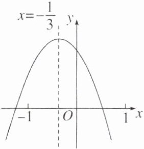 【例3】已知二次函数$y= ax^{2}+bx+c(a≠0)$的图象如下图所示,对称轴是直线$x= -\frac{1}{3}$,下列结论:①$ab<0$.②$a-b+c<0$.③$3b= 2a$.④$a+4c>2b$,其中正确结论的个数是( )