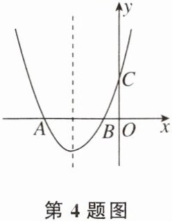4. 如图,二次函数$y= ax^{2}+bx+c(a>0)的图象与x轴交于A,B$两点,与$y轴正半轴交于点C$,它的对称轴为直线$x= -1$,则下列选项中正确的是( )