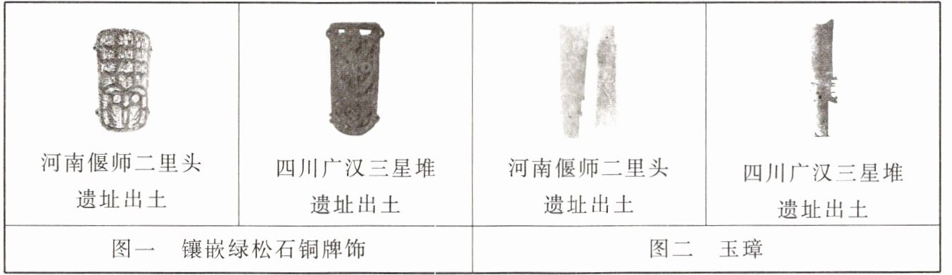 9. 图一和图二是河南偃师二里头遗址和四川广汉三星堆遗址出土的两组相似度很高的文物。它们可用于佐证( )