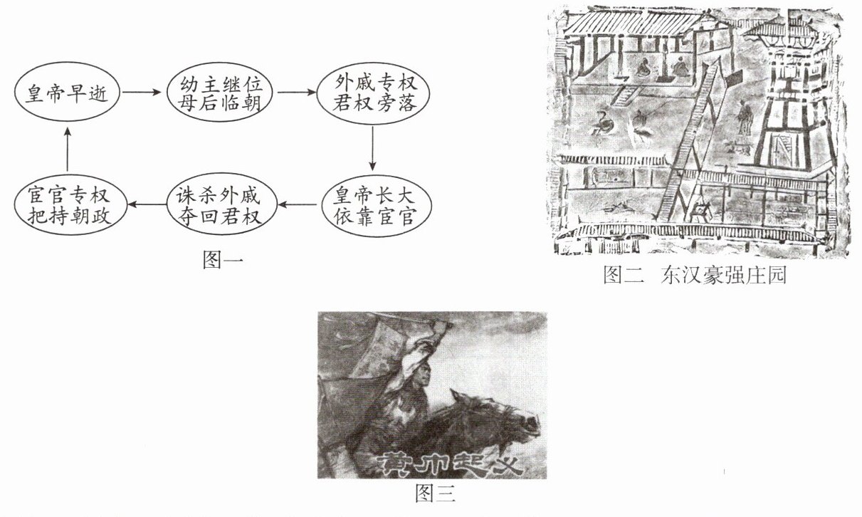 (3)材料二中图三事件对东汉统治产生了怎样的影响?简要说明材料二图片所反映事件的内在联系。(4分)