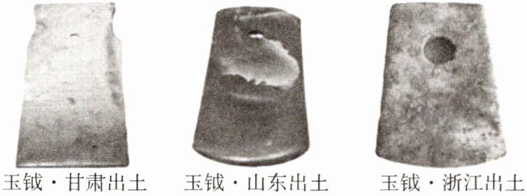 (注:图片下方标注“玉钺·甘肃出土”“玉钺·山东出土”“玉钺·浙江出土”)