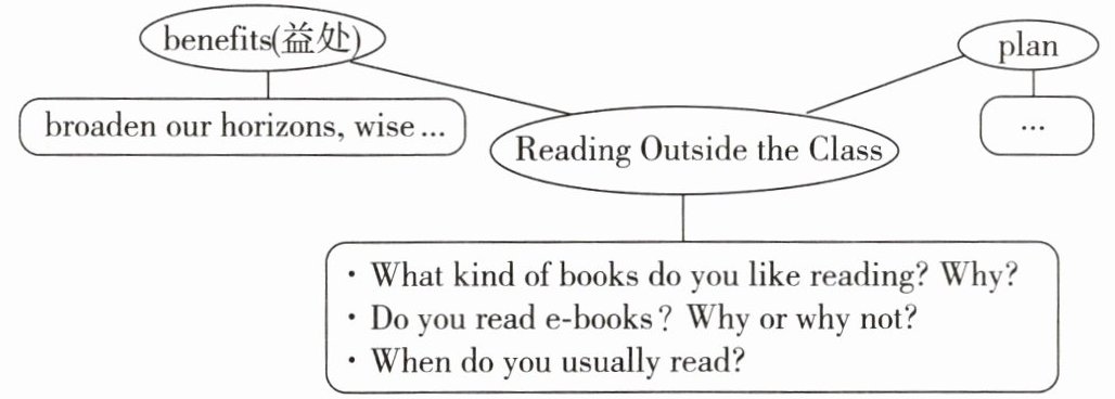Reading outside the class is very beneficial. It can broaden our horizons and make us wise.I like reading storybooks because they are interesting and can teach me a lot. I don't read e-books. Because reading e-books for a long time is bad for my eyes. I usually read after finishing my homework in the evening.My reading plan is to read for half an hour every day and read at least five books this term.