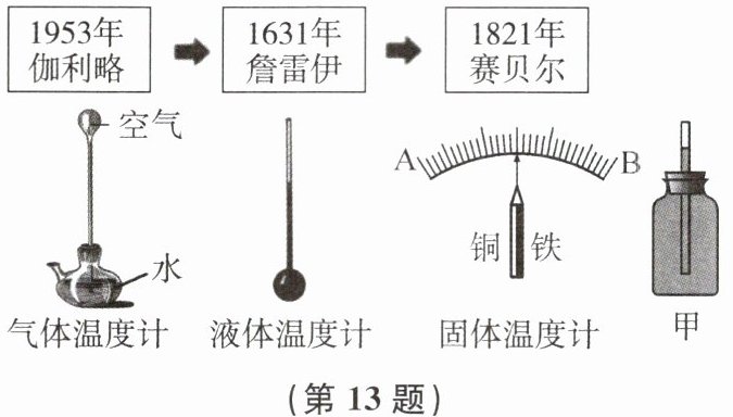 13. 以下为某校学生进行“温度计发展史”的项目化学习的部分片段,通过查阅资料整理了温度计发展史,请解答下列问题: