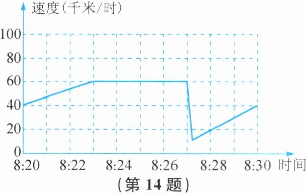 14. 如图为紧急刹车前后汽车行驶的时间与速度图像,对此图像分析不正确的是( )
