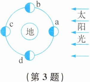 3. 读图,画出月球运行到图中a、b、c、d处时的月相(用斜线表示阴影)。