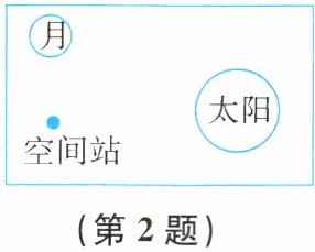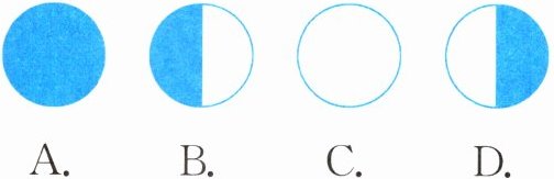 2. 2022年3月23日,天宫课堂第二课开讲啦!天地互动环节,同学们问“空间站上看到的月亮和地球上看到的是一样的吗”?翟志刚老师说:“没有太大的区别”。如果某时刻太阳、月球和空间站的位置如图所示,航天员看到的月相为( )