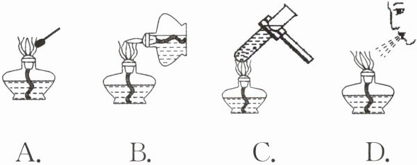 10. 如下图所示,使用酒精灯的操作正确的是 ( )