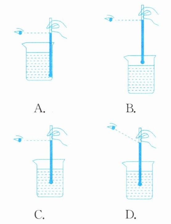 8. 用温度计测量一杯热水的温度,其中正确的是( )