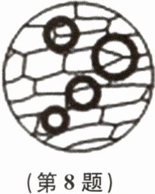 8. 小明制作洋葱鳞片叶内表皮细胞临时标本后,在显微镜下观察到的物像如图所示,视野内出现气泡可能是制片过程中______操作不当引起的( )