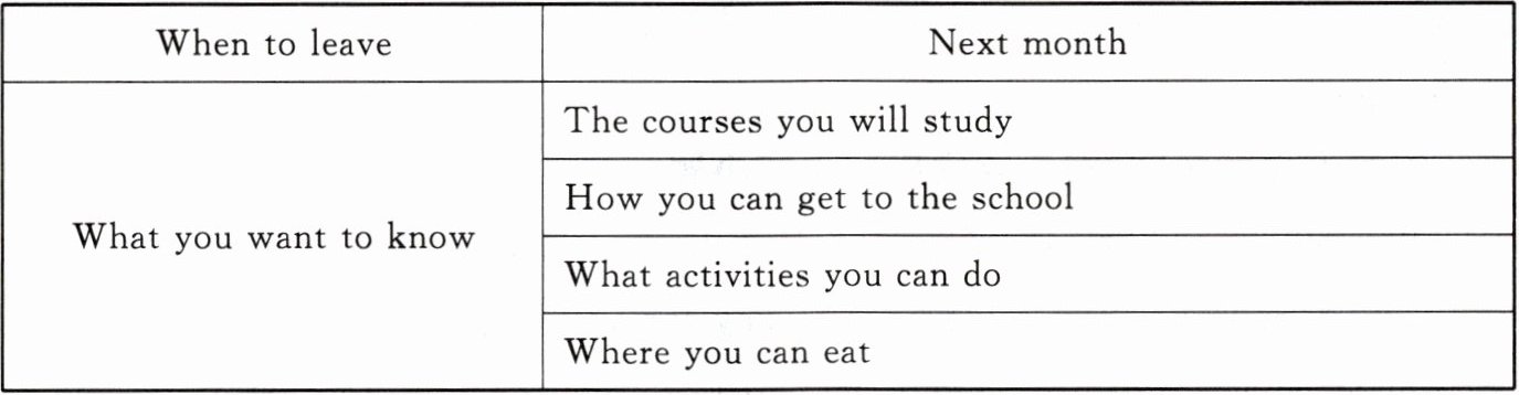 First,I would like to know how many courses I will take and what they are. Second,I wonder if you can tell me how to get to your school. Third,could you please tell me some activities that students can take part in after school? Finally,could you please suggest some places to have meals around the school?