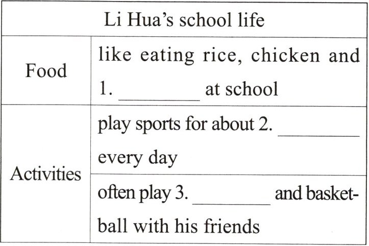 假如你是李华,你给你的美国笔友Lily回信介绍你的学校生活情况。请阅读下面的信件并根据信件内容填写表格,掌握文章结构及写作思路。