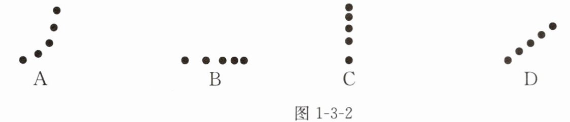 8. 图1-3-2是利用每秒闪光10次的照相装置拍摄到的四个物体运动的闪光照片(图中的黑点表示物体),其中可能做匀速直线运动的物体是(