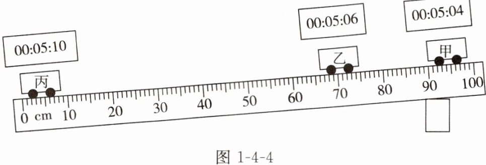 10. 某物理兴趣小组利用带有刻度尺的斜面、小车和数字钟测量小车的平均速度,如图1-4-4所示,图中显示的是测量过程中小车在甲、乙、丙三个位置及其对应时间的情形。