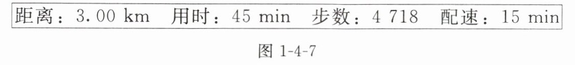 12. 健步走是一项以促进身心健康为目的、讲究姿势、速度和时间的步行运动。某市在当地马拉松公园举行了庆“三八”中国健步走活动,上千名健步走爱好者以绿色健步的方式迎接“三八”妇女节的到来,倡导低碳健康生活。电子软件上记录的小芳步行的部分信息如图1-4-7所示,此过程中小芳(配速表示跑1 000 m所用的时间)(