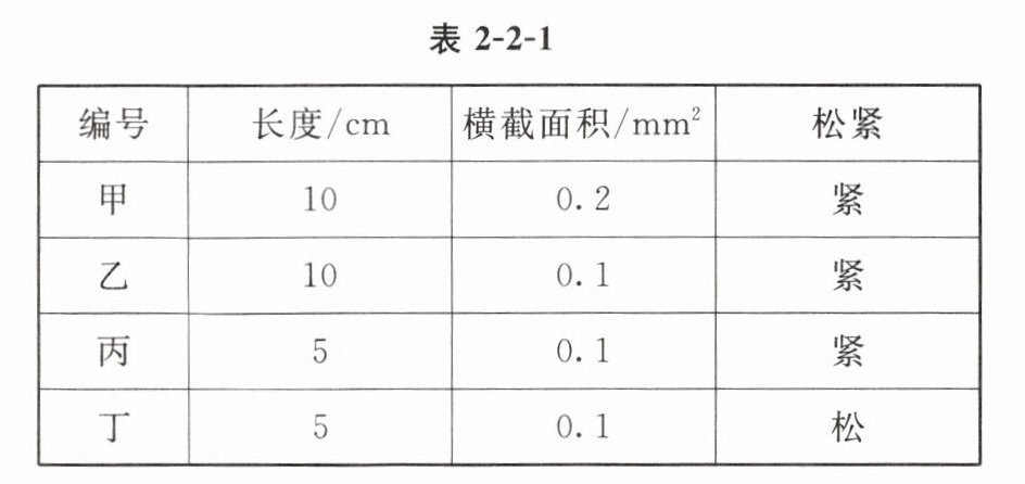 15. 某同学为了探究物体发声时振动的频率高低与哪些因素有关,他选择了四根钢丝进行实验,如图2-2-4所示。具体数据如表2-2-1。