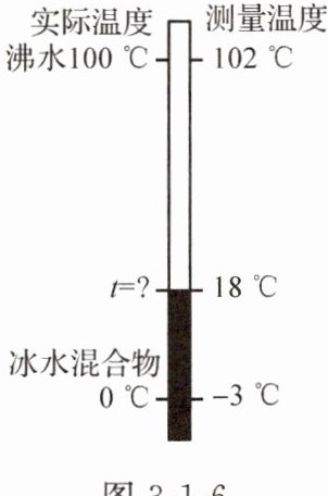 12. 小明有一支温度计,虽然它的玻璃管的内径和刻度都是均匀的,但标度却不准确。它在标准大气压下的冰水混合物中的示数为-3℃,沸水中的示数是102℃,如图3-1-6所示。当它指示的温度是18℃时,实际的准确温度是
