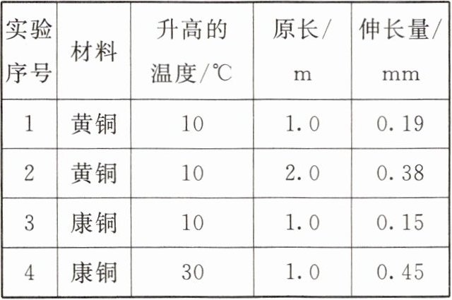 13.(选做)一般固体受热时,在各个方向上的长度都会增大。物体在某一方向上长度的膨胀称为线膨胀。表3-1-1是科技小组的同学探究影响物体线膨胀的因素的实验记录,请根据实验记录回答问题。