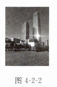 4. 如图4-2-2所示,许多建筑采用玻璃进行外墙装潢,这在美化城市的同时也造成了光污染,造成这种污染的主要原因是阳光在玻璃表面发生了