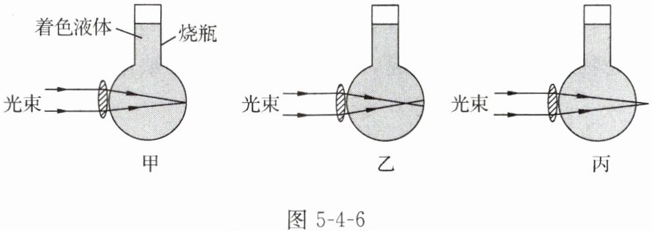 12. 某物理兴趣小组用一组眼睛模型、一个能发出平行光束的光源和几个不同焦距的凹透镜和凸透镜等器材来探究矫正视力的方法,如图 5-4-6 所示。