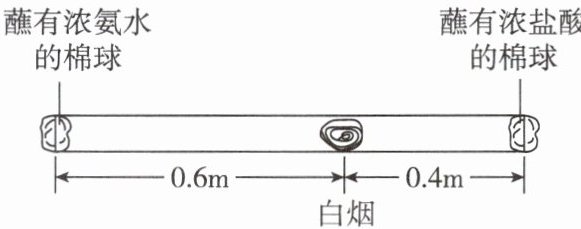 2. 玻璃管两端同时放蘸有浓氨水和浓盐酸的棉球,几秒钟后,玻璃管内有一团白烟(如图所示),白烟是氨气$(NH_3)$与氯化氢(HCl)反应生成的氯化铵$(NH_4Cl)$固体小颗粒。下列说法不正确的是(