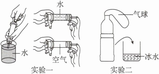 (1)取两支大小相同的医用注射器,将栓塞向外拉,分别吸入等体积的空气和水,用手指顶住注射器末端的小孔,将栓塞慢慢推入,较难被压缩的是