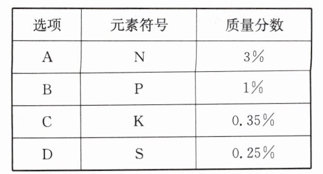 5. 下表是生物细胞中的部分元素及其含量,其中属于金属元素的是(