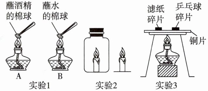 (1)实验1:加热片刻,观察到A中棉球上出现蓝色火焰,B中棉球不燃烧,由此得出物质燃烧的条件之一是