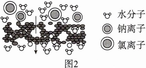 海水淡化技术主要有热分离法和膜分离法,热分离法利用蒸发和冷凝分离水与非挥发性物质,能耗大、成本高;膜分离法利用薄膜的选择透过性实现海水淡化,但现有薄膜的水通量低,应用受到限制。有科学家提出,给石墨烯“打上”许多特定大小的孔,制成单层纳米孔二维薄膜,可进行海水淡化。石墨烯海水淡化膜工作原理如图 2 所示。
