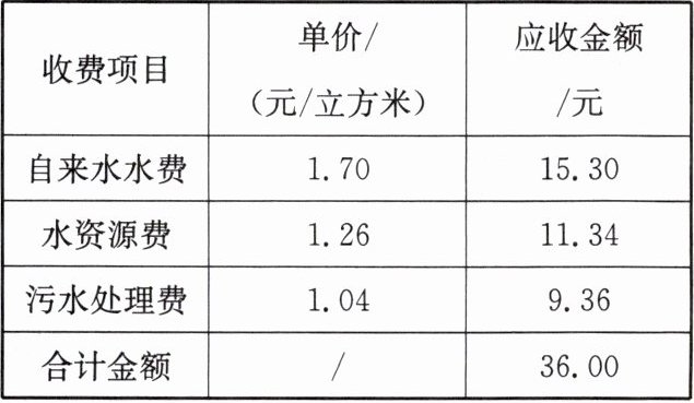 (1)收费项目中还包含水资源费和污水处理费(合理即可)