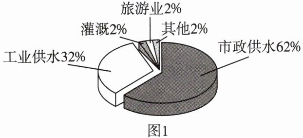 地球是一个美丽的“水球”,表面约 71%被水覆盖,淡水仅约占总水量的 2.5%;其余是咸水。海水淡化是解决人类淡水资源短缺的有效措施。全球海水淡化水用途如图 1 所示。