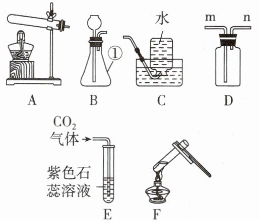 (填“m”或“n”)端进入。(4) E装置试管中的现象是
